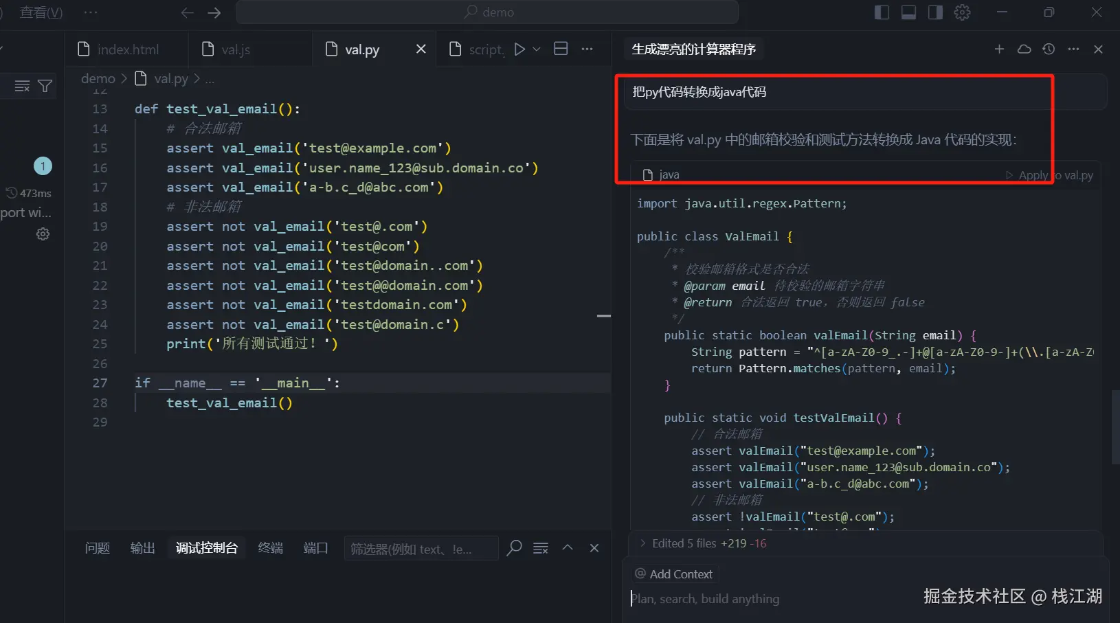 比如下面是通过Python转换成Java代码后的运行效果