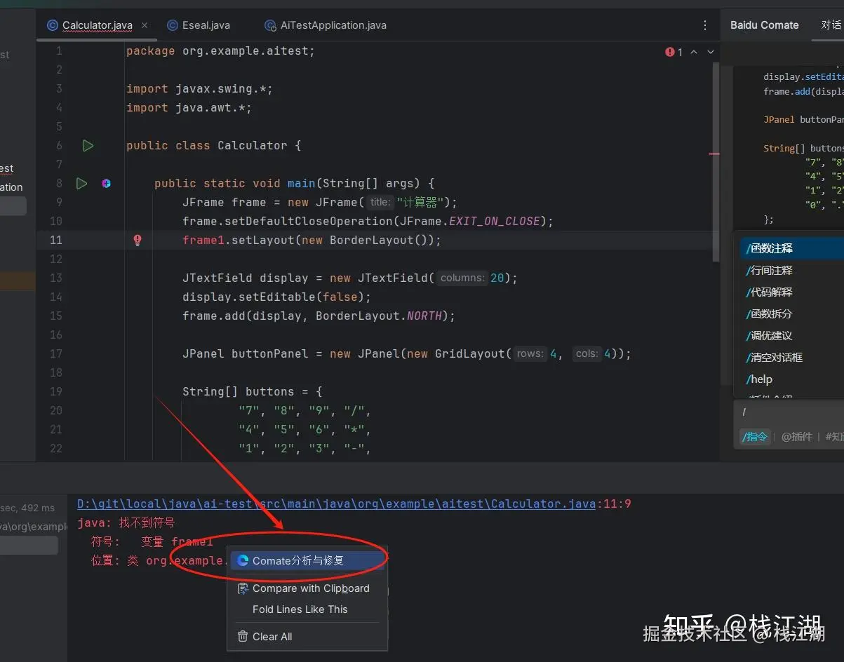 点击Comate分析与修复,会出现相应的解决方法