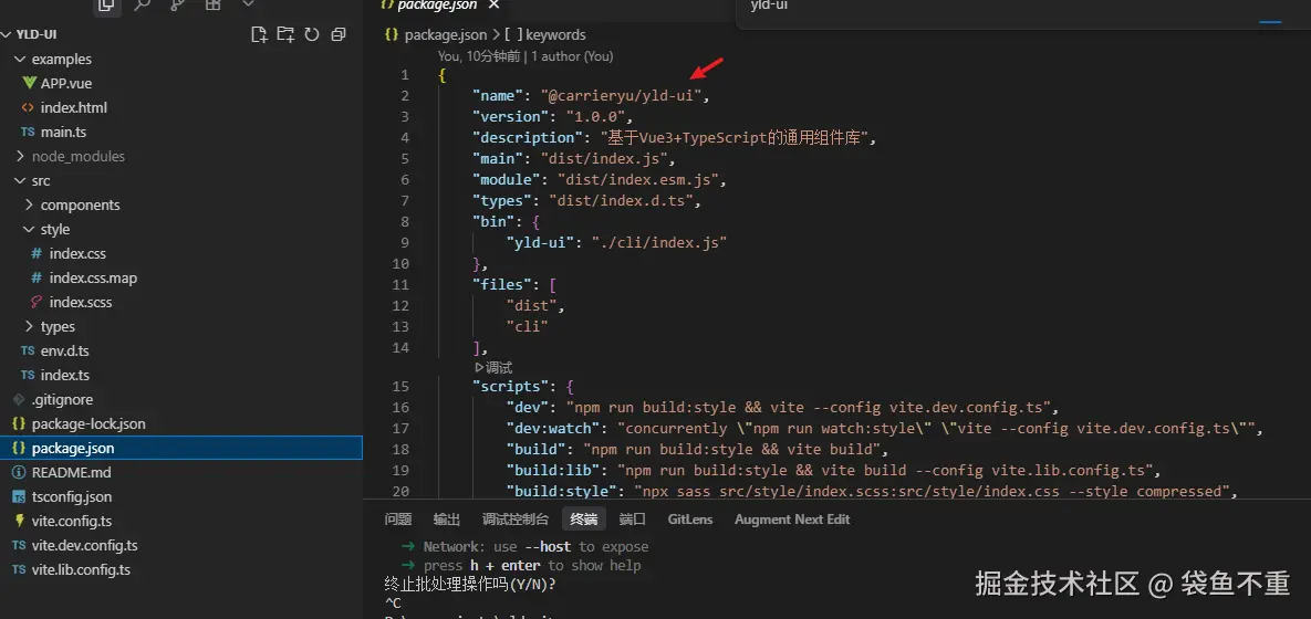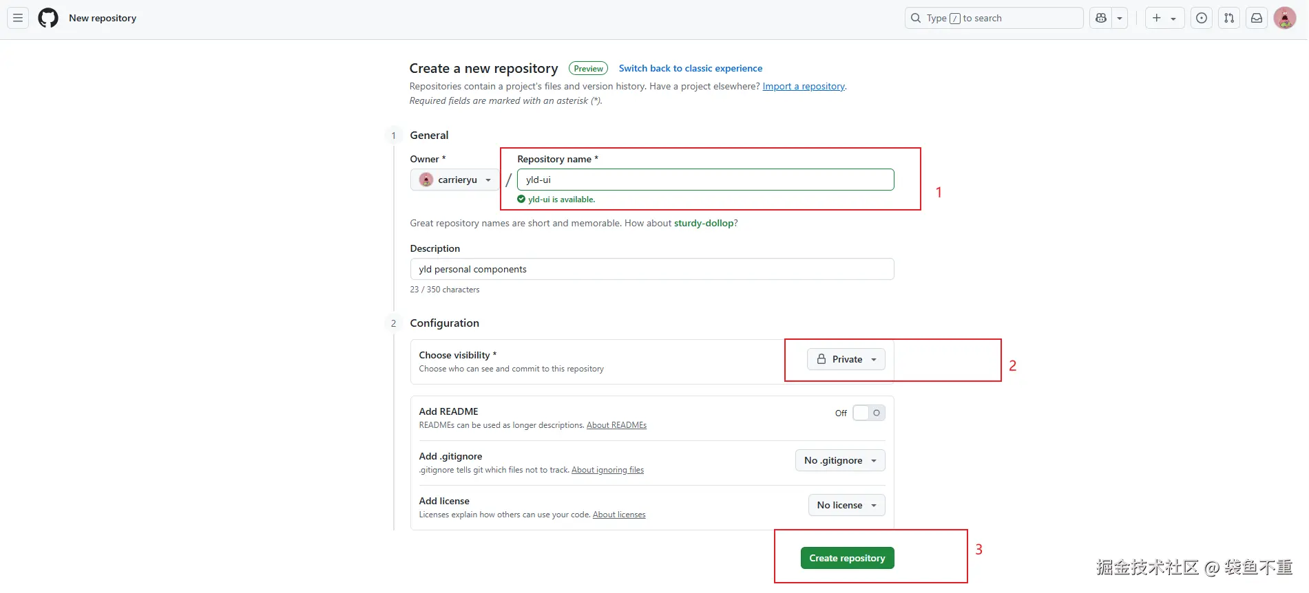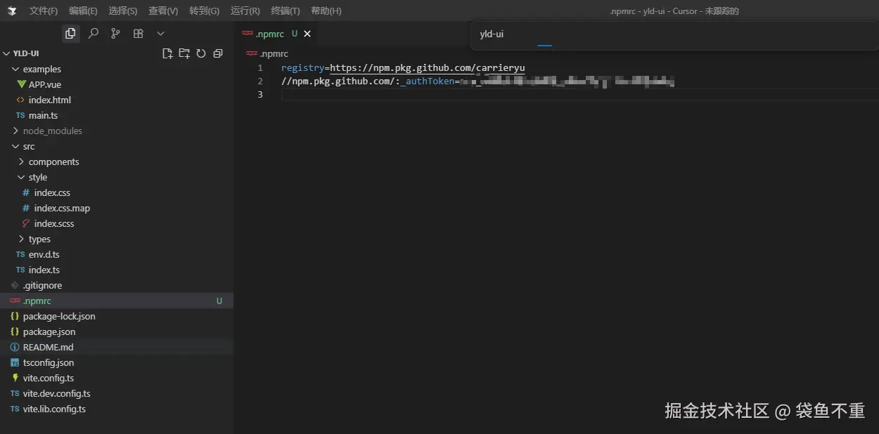 注意这里的name配置格式为 @github用户名/包名。我的用户名是 carrieryu,打包的仓库是 yld-ui