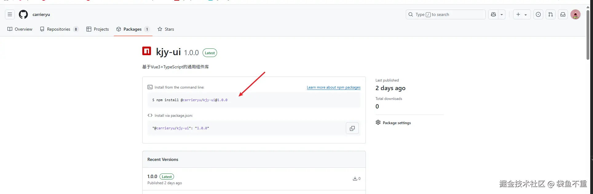 4.1. 问题1:npm publish 命令行显示发布成功了,但是github packages 列表没有对应包