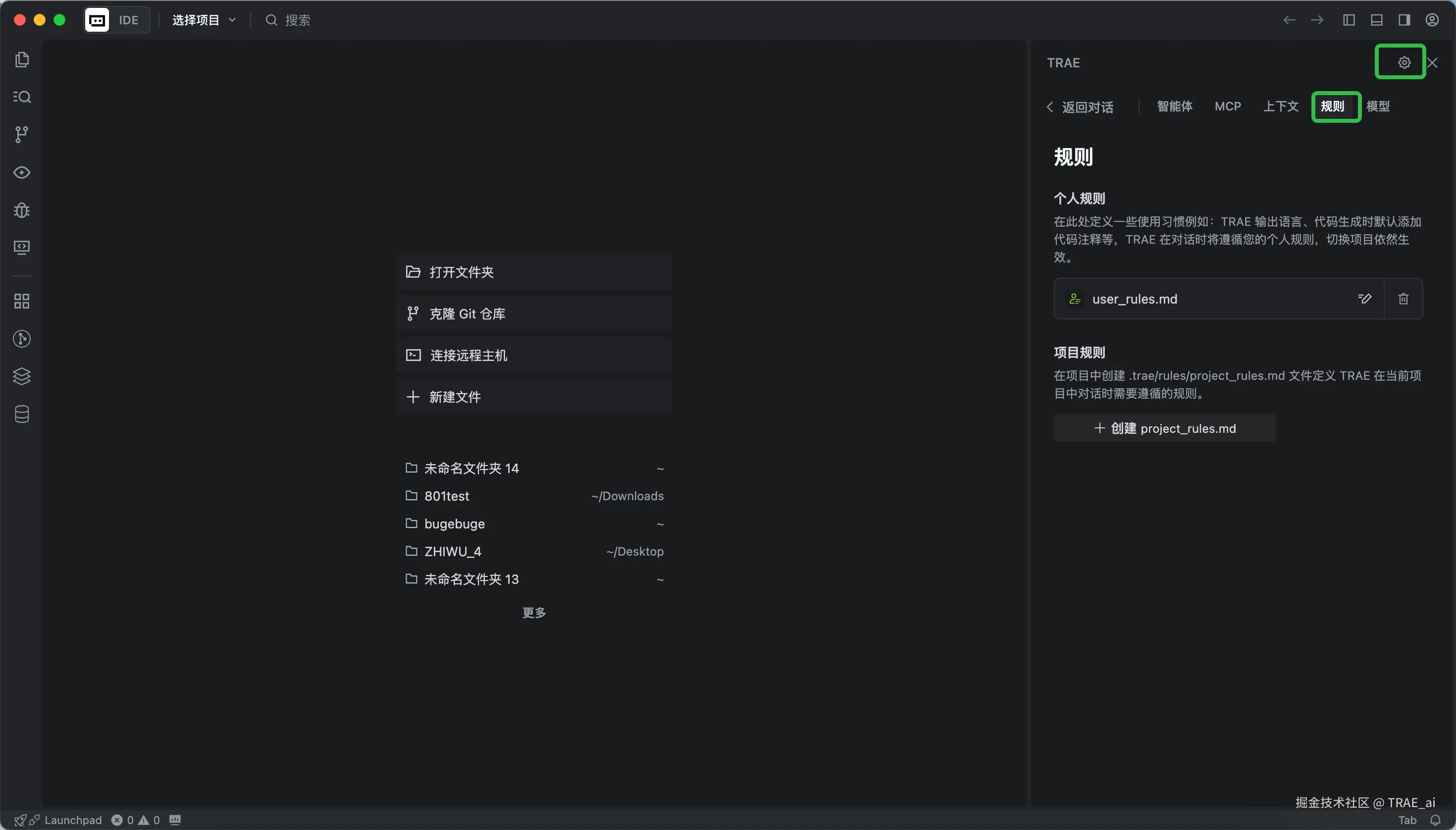 规则优先级:用户输入 > 自定义智能体的提示词 > user_rules.md > project_rules.md