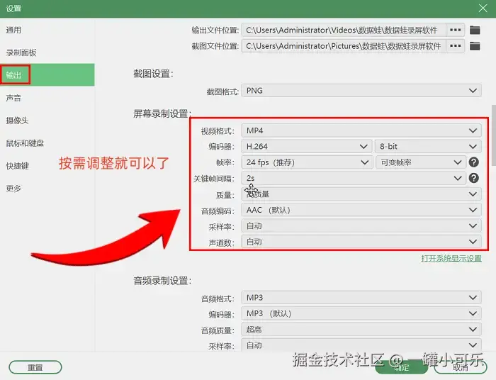 步骤2:选择所需要录制模式后,就可以进入音频源配置界面。在此阶段,你可以根据需求勾选音频输入设备,也支持对录制区域进行个性化设置。如果想调整视频编码格式、分辨率等参数,可进入 “输出设置” 模块进行修改。确认所有设置无误后,点击界面右侧的录制控制按钮即可启动录制。