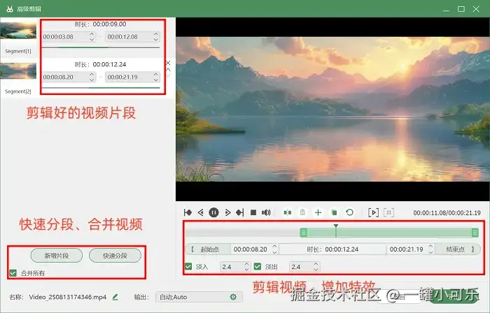 步骤3:录制好视频后,我们还可以直接用这款软件的后期编辑功能。点击打开 “高级剪辑” ,可以在这里面删除不需要的片段、给视频加上特效等。