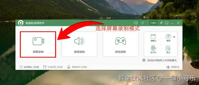 步骤1:在你的电脑上找到数据 蛙录屏软件的图标,双击打开它。打开软件后可以看到软件内有多种录制模式,你根据需求来选择就好。今天我们先来讲解一下 “屏幕录制” 这个模式。