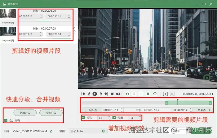 步骤3:点击停止录制后会自动跳转预览界面,拖动时间轴两端的小箭头,可以轻松裁掉开头等待和结尾多余的画面。点击 “高级剪辑” 按钮,还可以给视频加个电影感转场等。