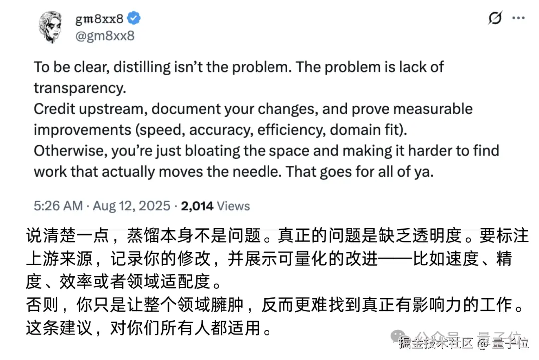 不少人也认同这一观点:蒸馏模型必须标注,保持透明性才是关键。