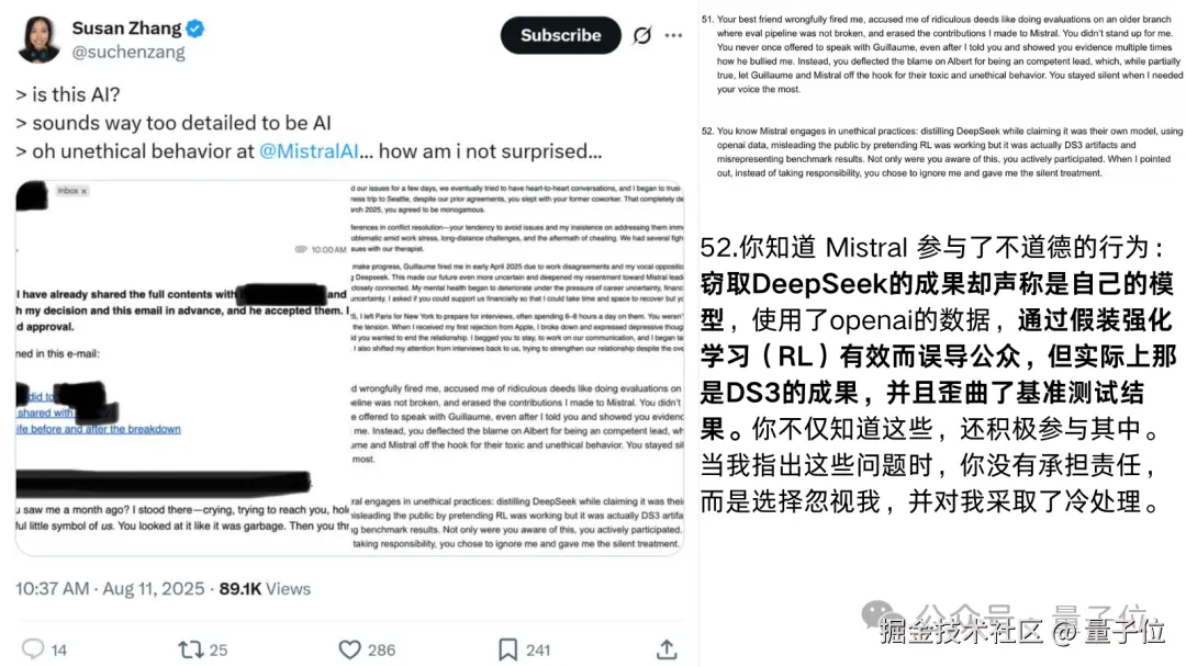 网友在推特上爆料,一位 Mistral 离职女员工群发邮件,直指公司多项黑幕。