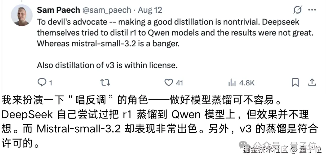 Mistral 蒸馏 DeepSeek 实锤