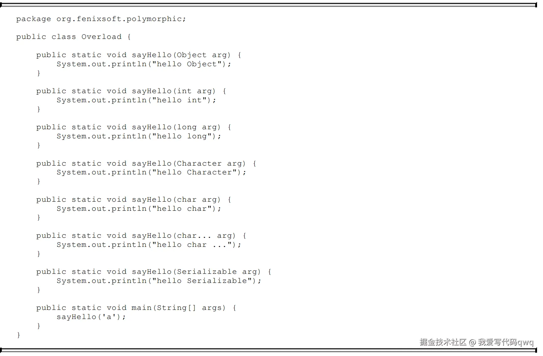 注释掉sayHello(char arg)方法后: