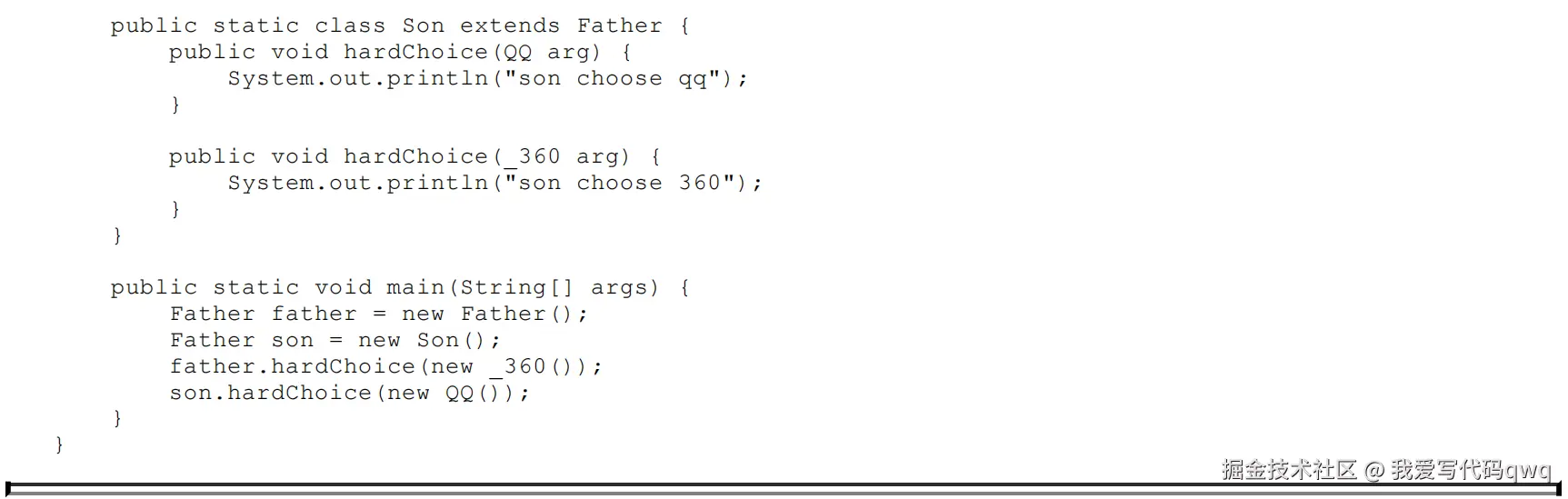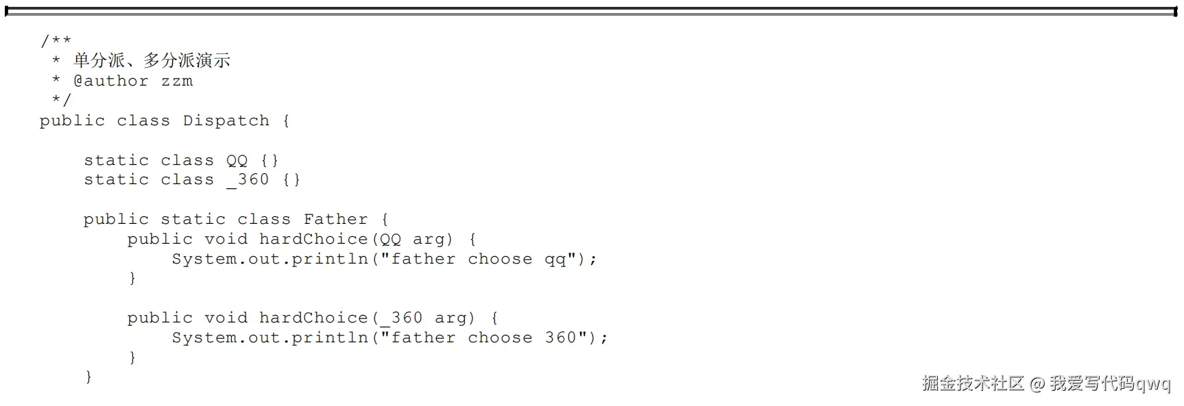 运行阶段中虚拟机的选择,也就是动态分派的过程。由于编译期已经决定目标方法的签名必须为hardChoice(QQ),