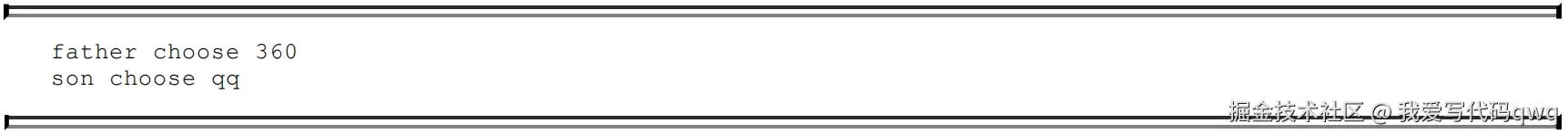 上面这段代码中编译阶段中编译器的选择过程,也就是静态分派的过程,选择目标的依据有两种:一是静态类型是Father还是Son,二是方法参数是QQ还是360。是根据两个宗量进行选择,所以Java语言的静态分派属于多分派类型。