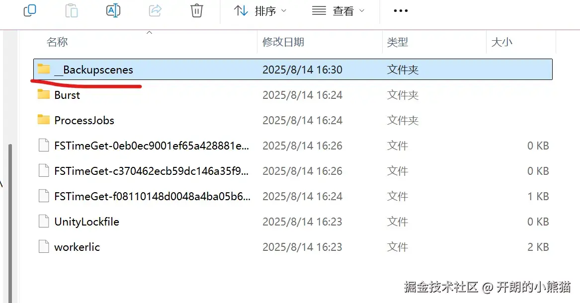 直接进入你的Unity项目文件夹。找到并打开名为 Temp 的文件夹。在Temp文件夹内,找到名为 _Backupscenes 的子文件夹。(参考下图)