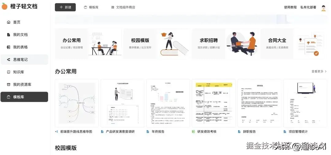 核心定位:基于 Web 的开源在线办公协作平台,集成文档编辑、思维导图、电子表格、AI 创作、模板管理和知识库功能。