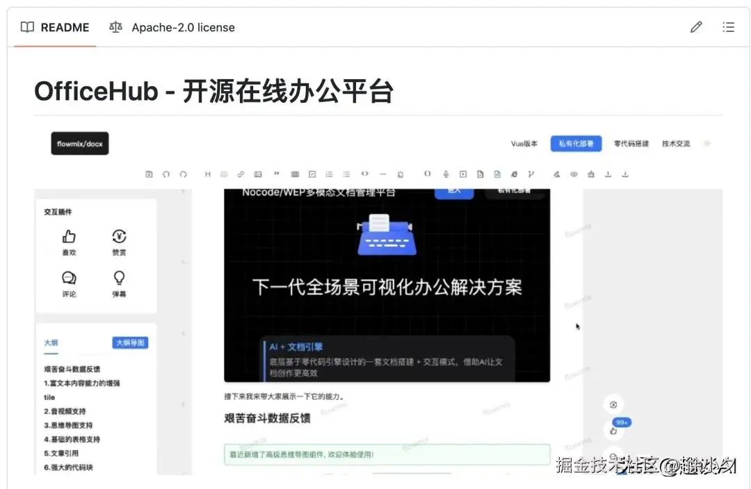 作为每天跟各种办公软件打交道的技术博主,我一直觉得「在线办公工具」是个矛盾体:要么功能全但收费贵(比如某钉、某飞),要么免费但功能零散(比如单独的在线文档、独立的思维导图工具)。所以我们决定花半年时间打造 OfficeHub 这个项目,把「文档 + 表格 + 思维导图 + AI + 知识库」完美的融合成一个办公智能体。