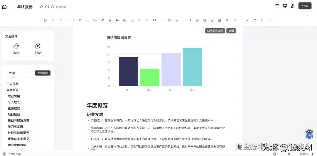 写文档时能一键生成大纲、扩写内容;