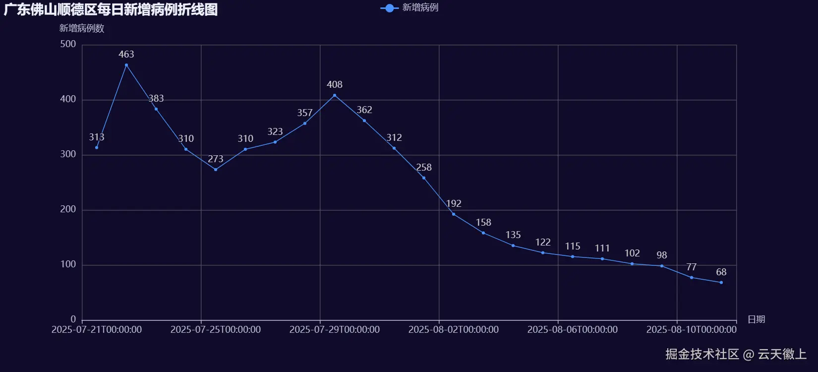 - 广东佛山顺德区2025-7-21至2025-8-11日的每日新增病例和累积病理。
