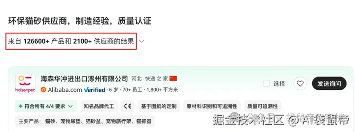 找猫砂,它从12万产品和2100家供应商中选出了2家
