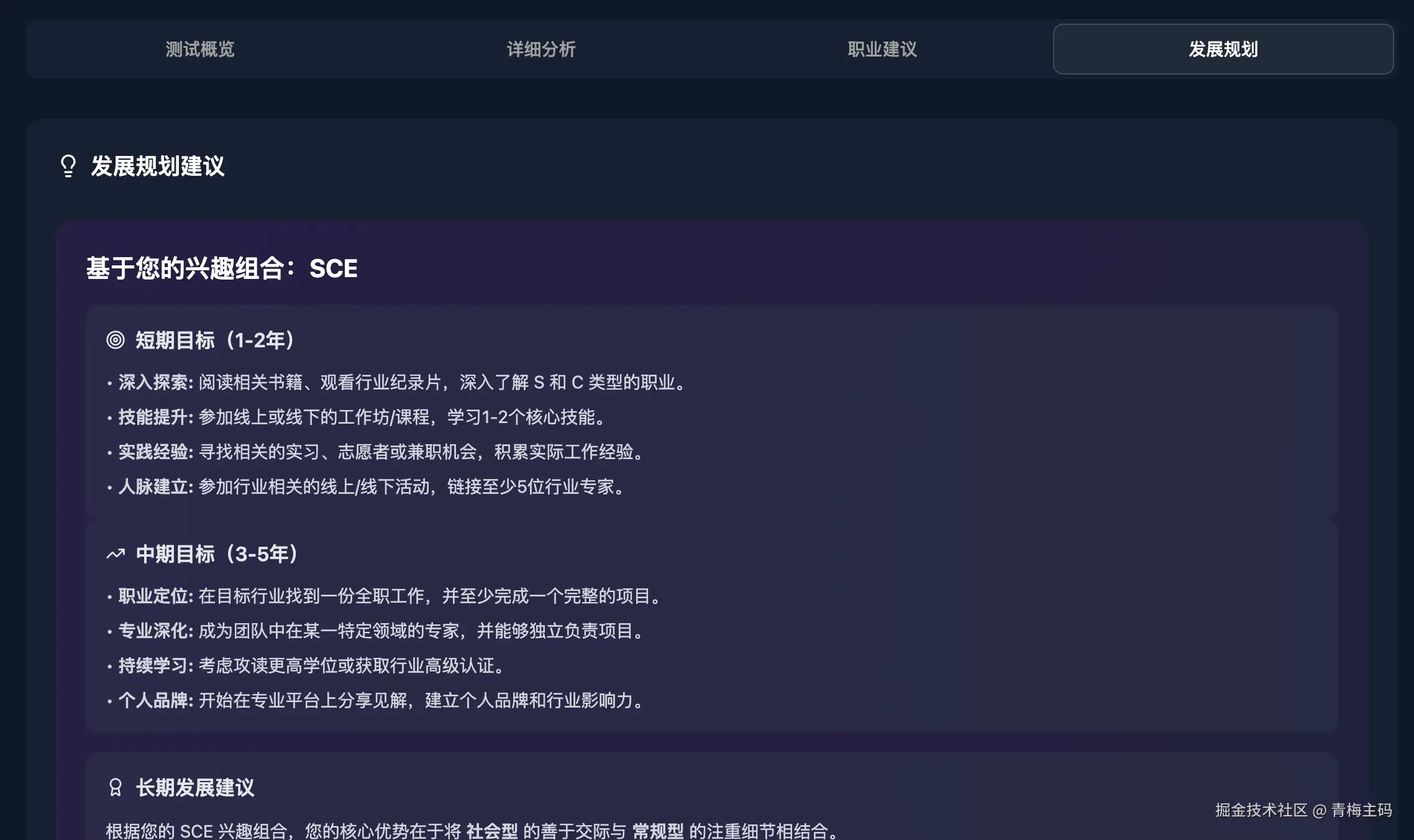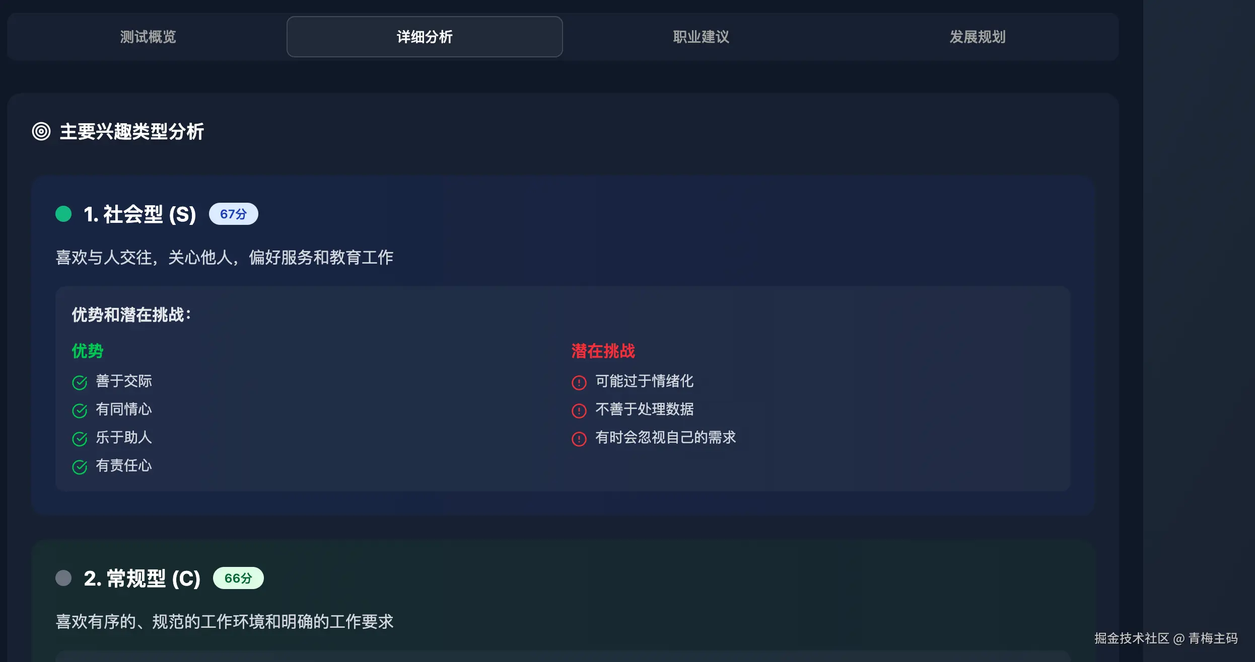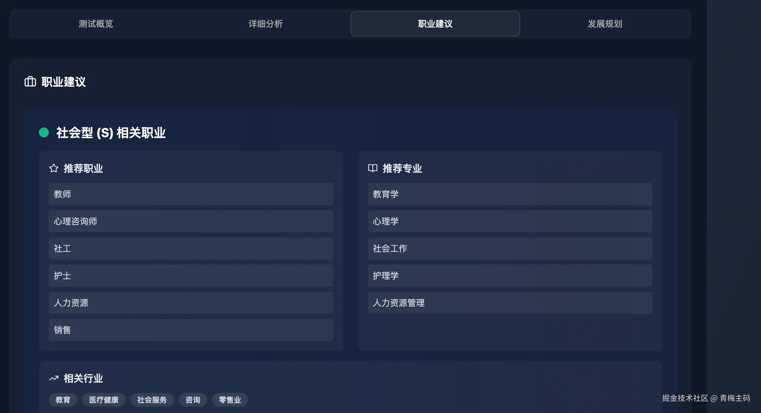 实用性:测试结果不仅告诉你适合的职业类型,还提供了具体的职业信息和发展路径,让你在职业选择和发展过程中有据可依。