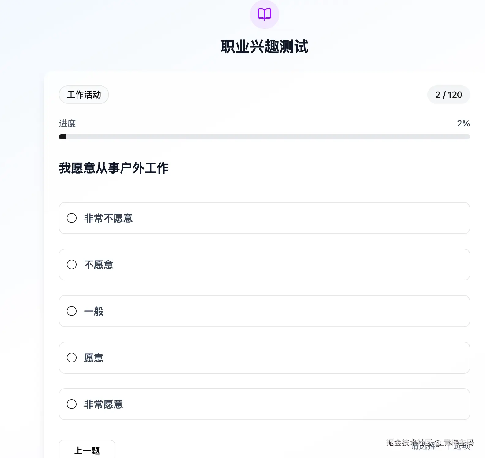 后来压力实在太大了,她做了一次心理咨询。了解了她的情况之后,心理咨询师让她做了一次霍兰德职业兴趣测试,她才了解到自己是偏向「研究型(I)」的人,心理压力大主要是因为自己干着需要高频社交的「企业型(E)」工作,痛苦感自然会不断累积。同时,这个测试告诉她,她其实更适合做的工作是教师、会计、财务、作家、图书馆管理员等与人直接沟通较少,但又能够体现自己价值相关的工作。