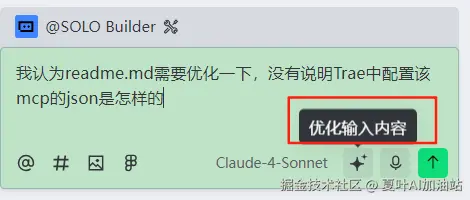 本次新版本Trae还有一个亮眼的功能,那就是内置了提示词优化功能。
