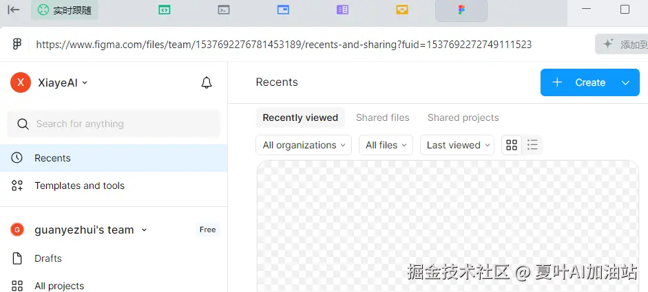 打开Figma面板,其实会发现它就是一个浏览器,但是只能浏览Figma的网页,所以说,内置这个词没有白叫,它就是把Figma网站从浏览器搬到Trae中来浏览了。