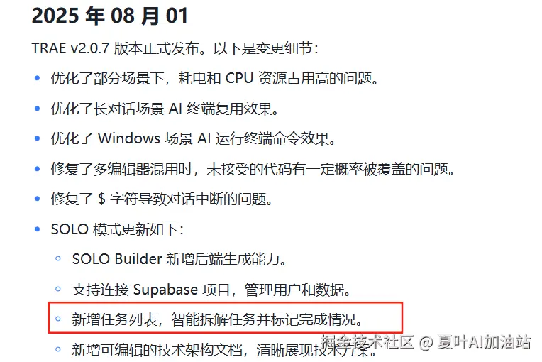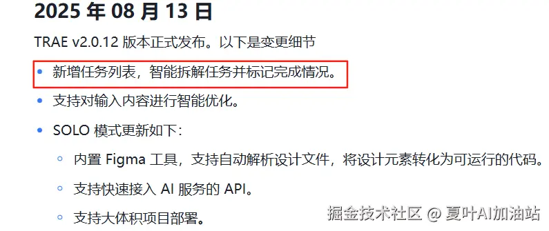 Trae对TODO列表的支持是分两步走的,前期只是SOLO模式支持: