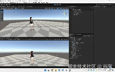 亲测过程:进入 Play Mode 进行测试。玩家按下拔枪键(我这里设置为“空格”键),角色平滑过渡到“GrabGun”(拔枪动画)。动画播放完成后,角色也自然回到“Idle”站立动画。测试过程中,角色没有出现卡顿或不连贯的现象。关于角色手部位置不贴合武器的现象,现在先不用管。在末篇文章《【Unity3D实例-功能-拔枪】角色拔枪(三)IK的使用-紧贴武器》。