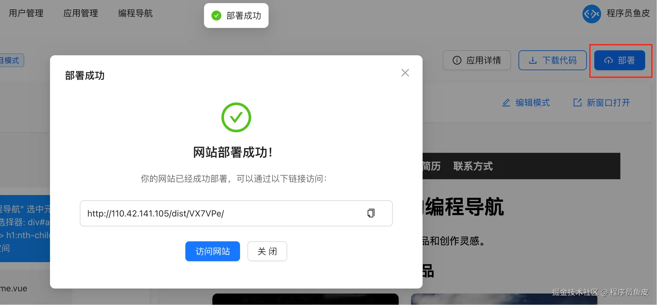 # 为生成的网站提供部署访问能力