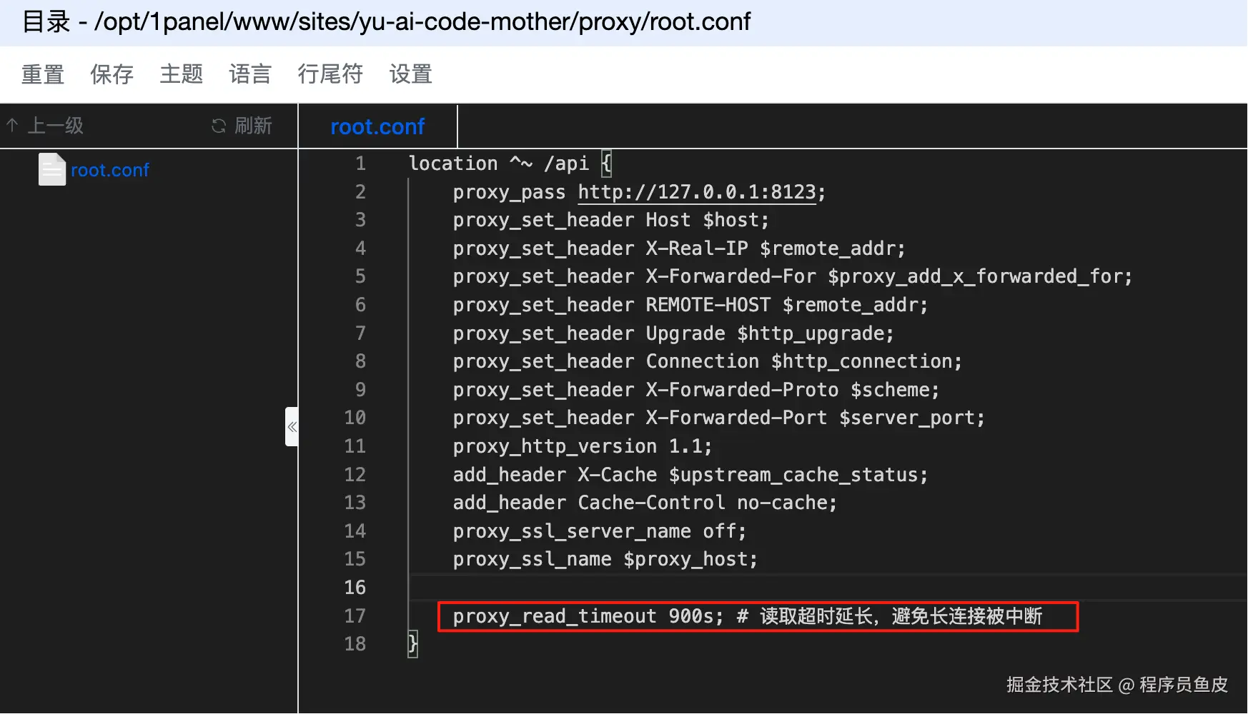 我们为了防止 AI 生成的 SSE 请求超时,需要修改反向代理配置。