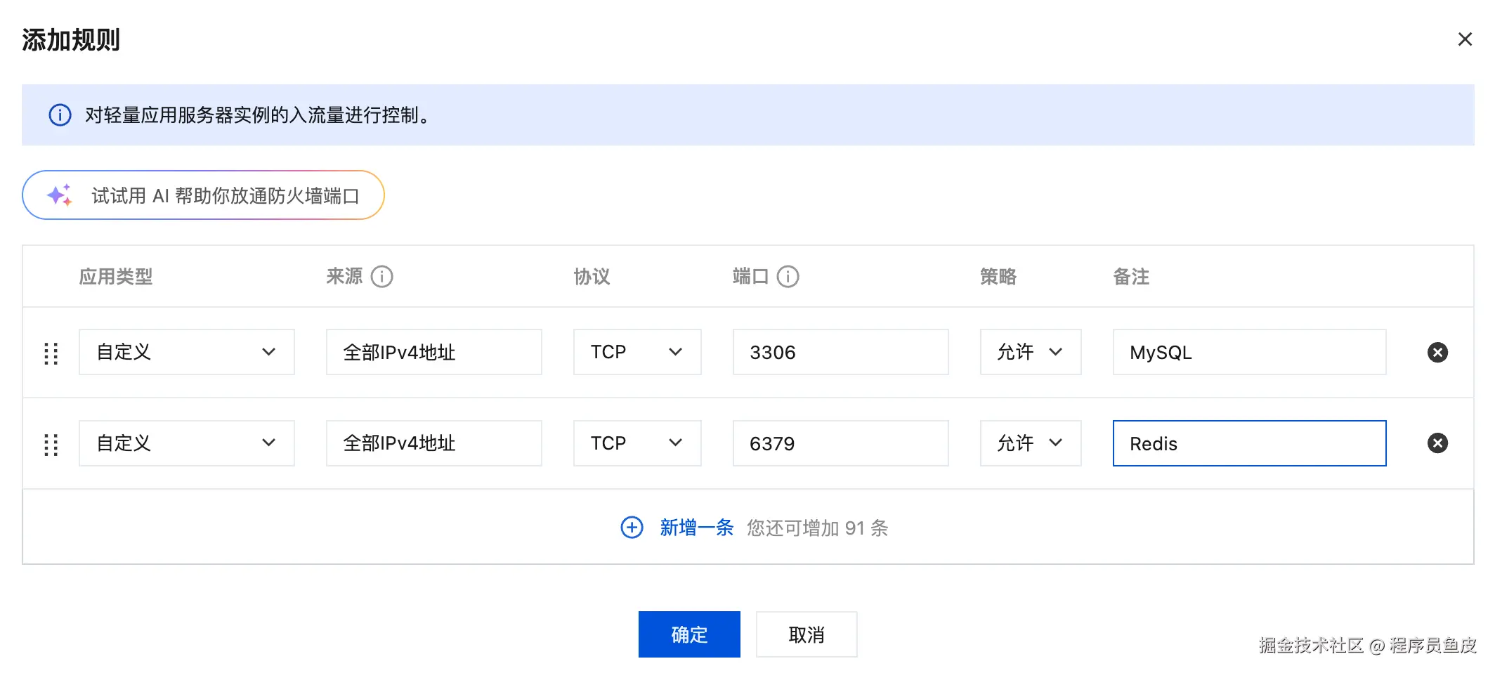需要在服务器控制台的防火墙中开通需要外网访问的服务端口,比如 MySQL 和 Redis:
