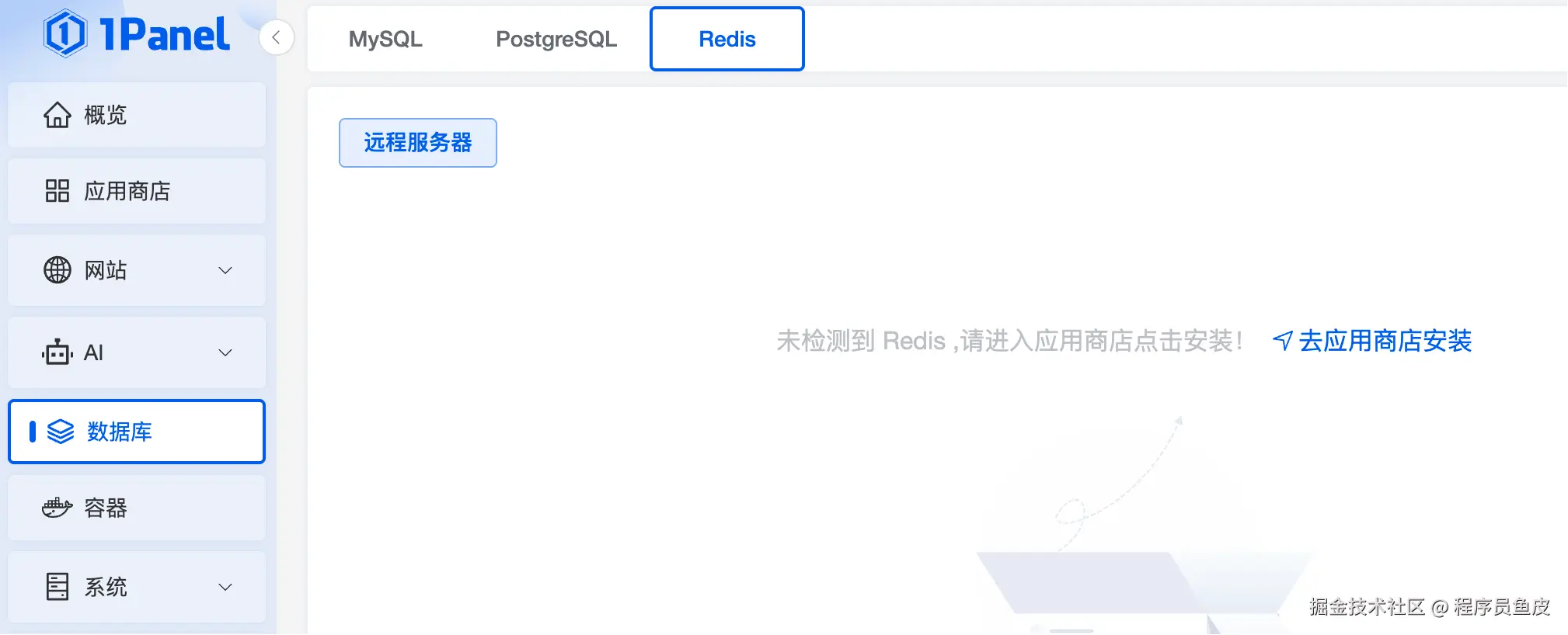 进入 数据库 面板的 Redis 标签页,安装 Redis: