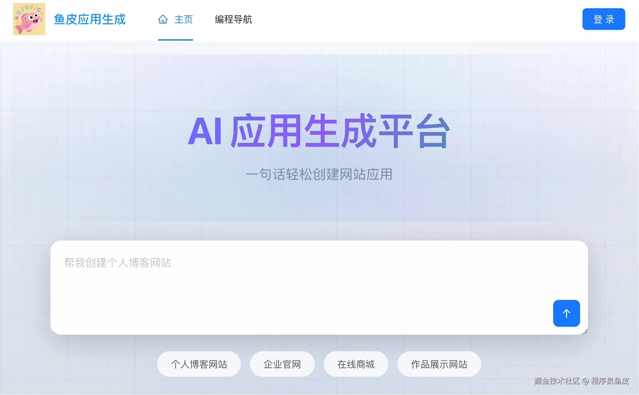 2)进入主页,和 AI 对话来生成一个网站: