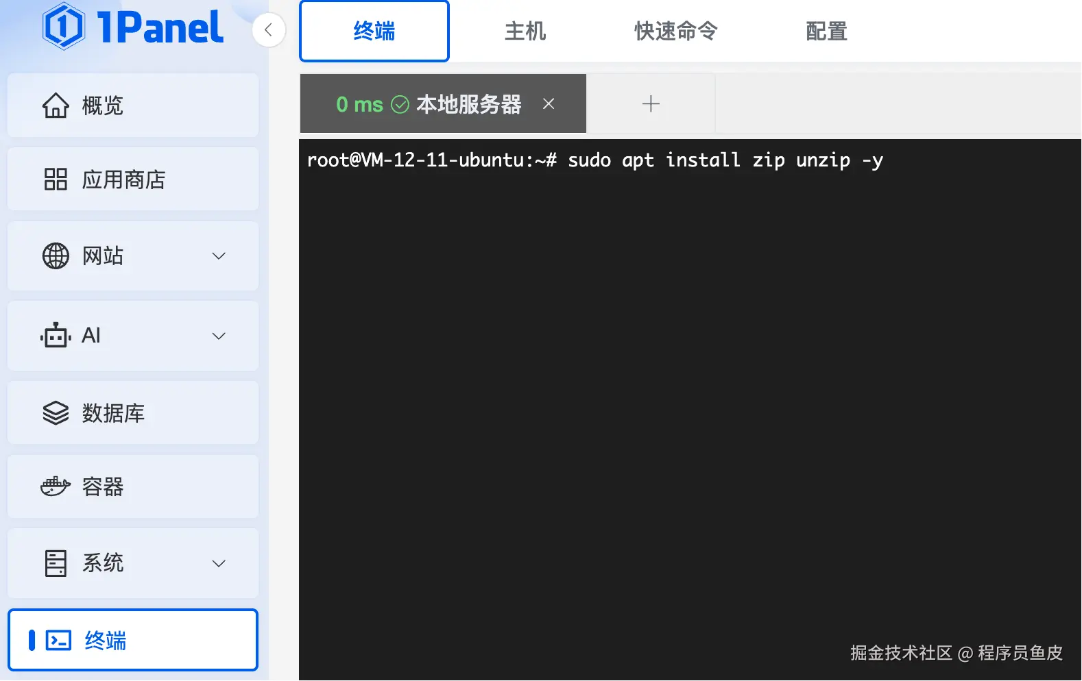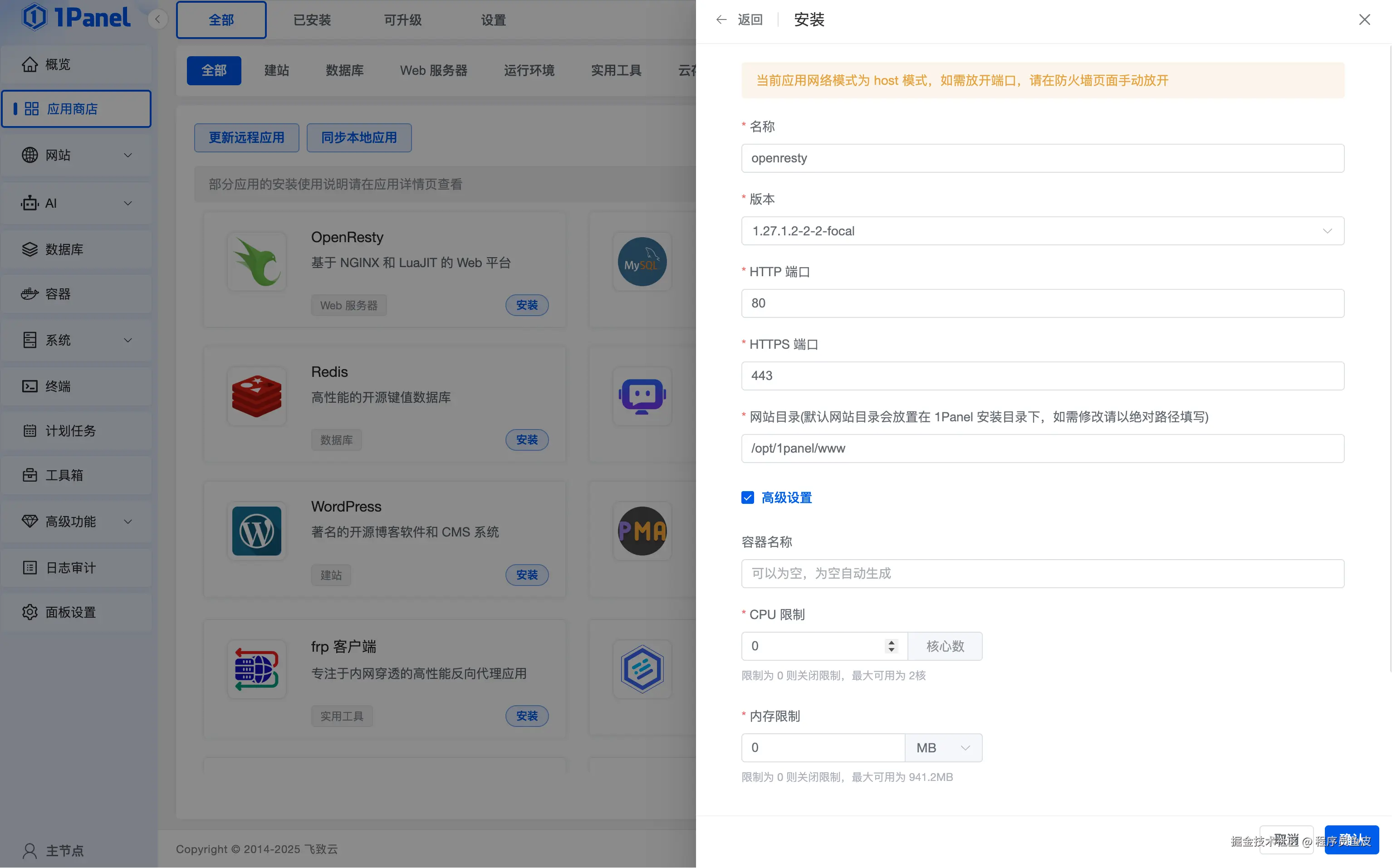 为了提高效率,本项目前端和后端均使用 1Panel 面板进行部署。