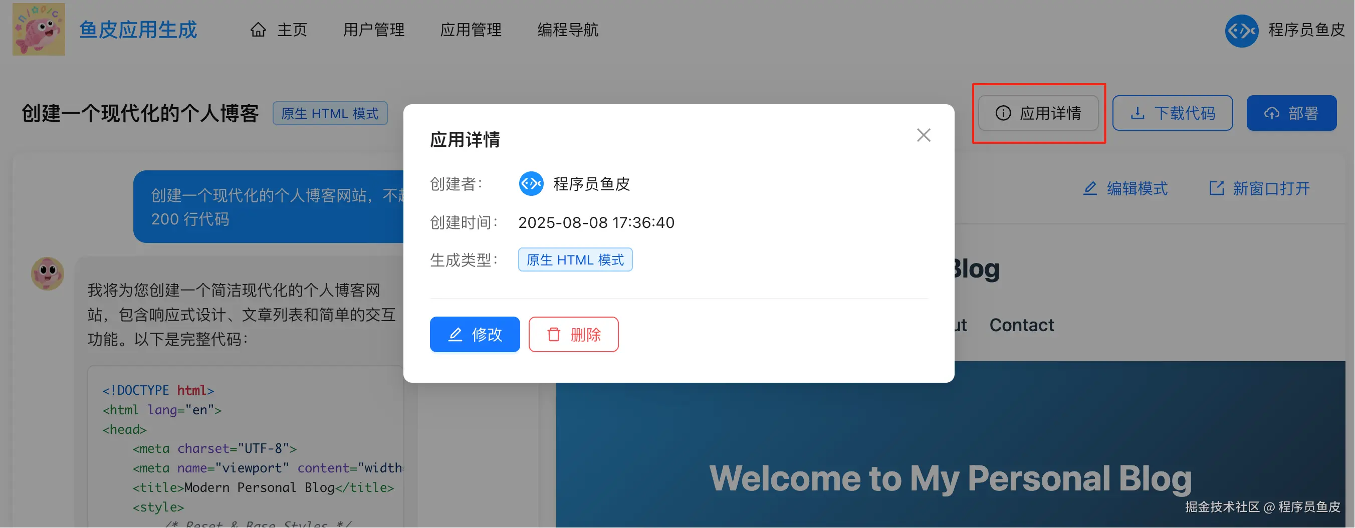 大家好,我是程序员鱼皮。经过近 2 个月的奋斗,我带大家开发的新项目 《AI 零代码应用生成平台》 进入尾声。