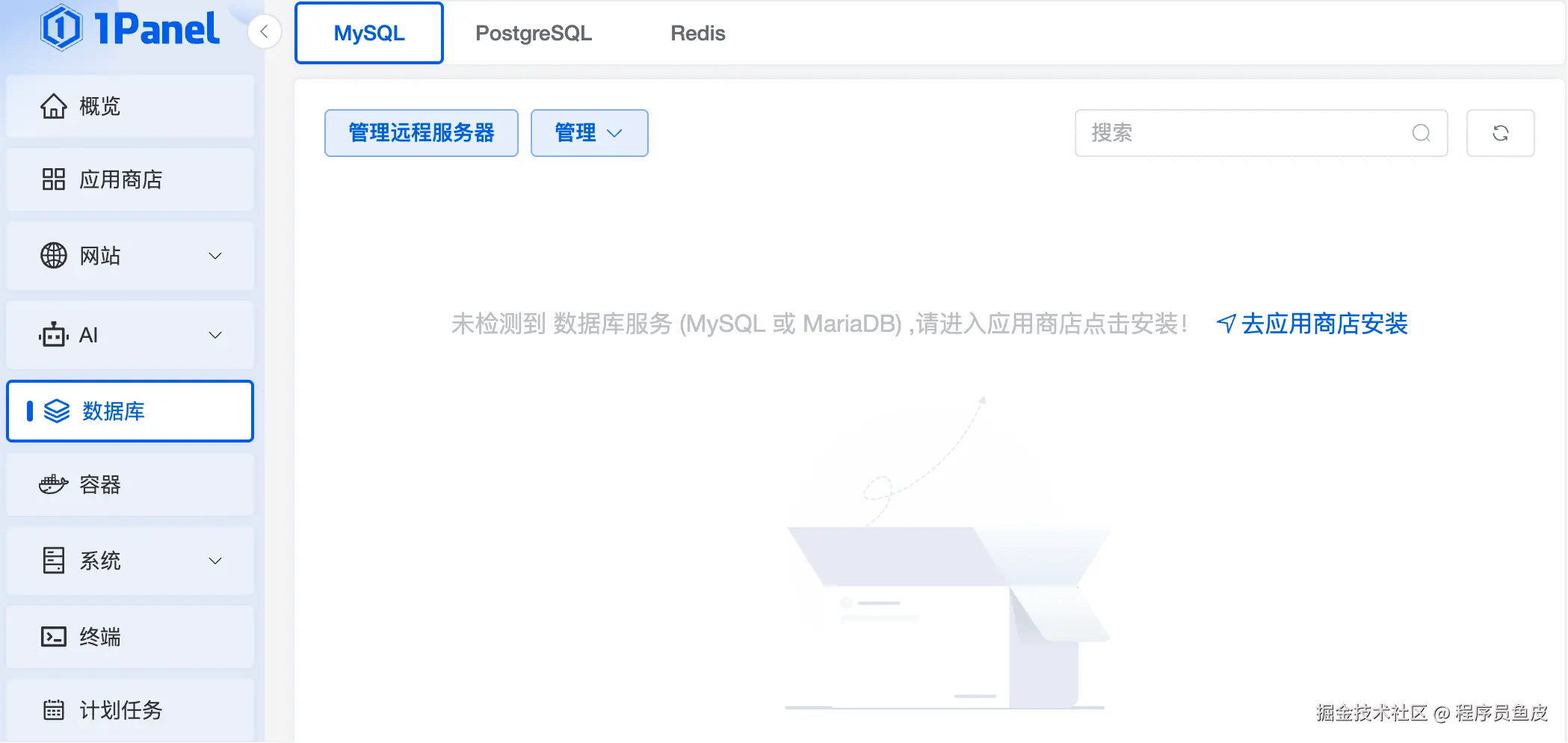 进入 数据库 板块去安装: