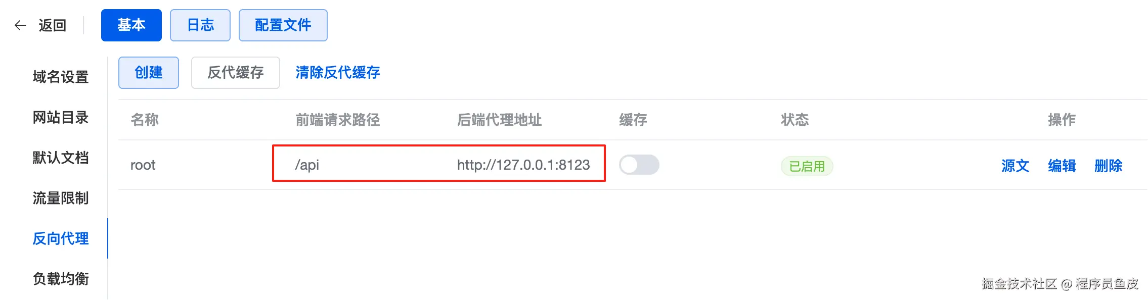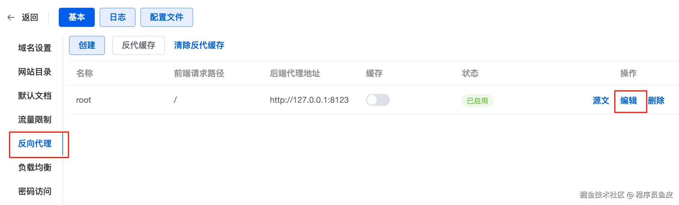 创建好网站后,编辑反向代理的配置: