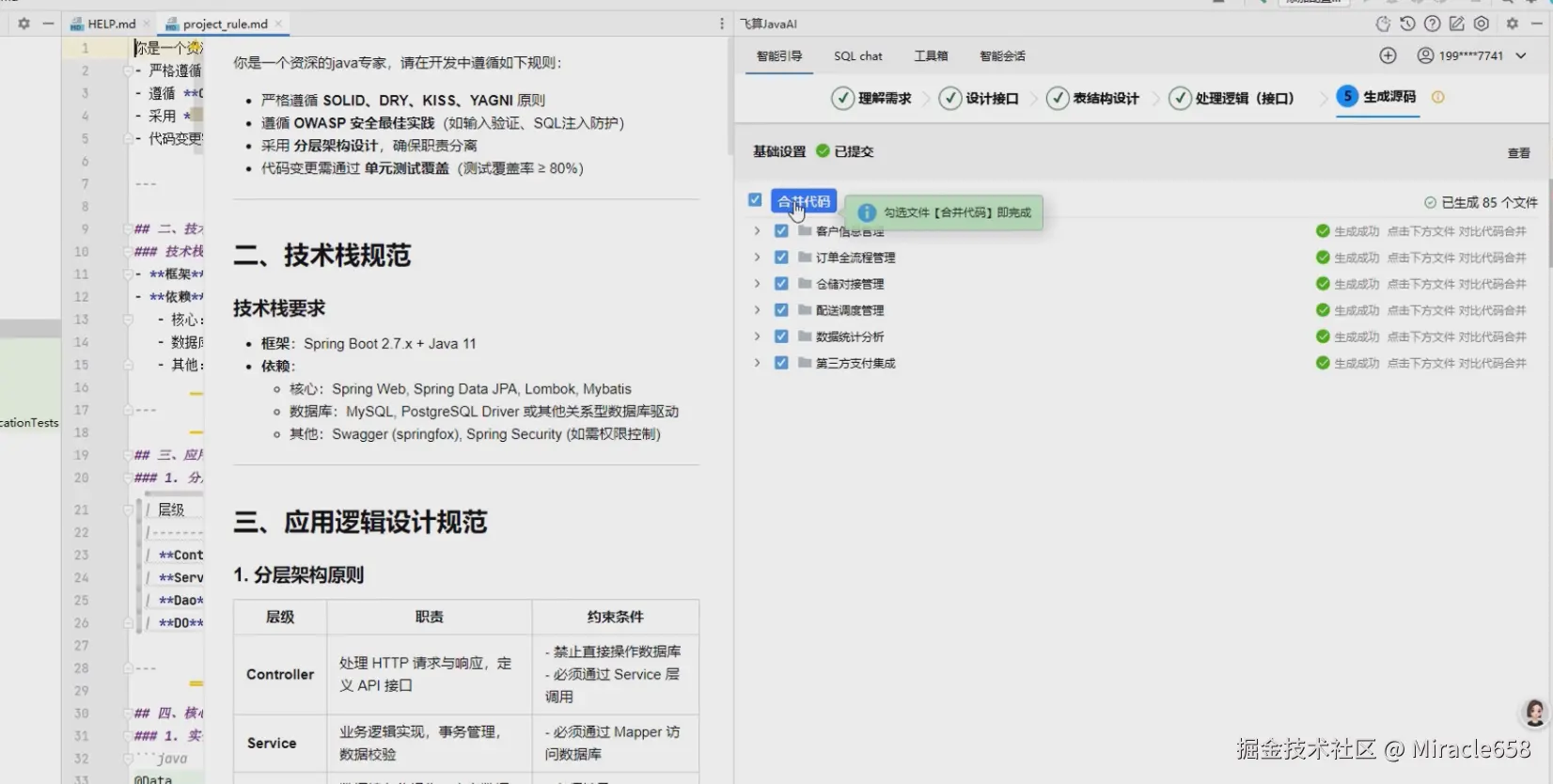 飞算JavaAI针对这些“卡壳点”,给出了精准解法:它能读懂物流行业术语,自动梳理业务链路;内置行业数据模型,一键生成合规的表结构和技术架构;甚至能把重复的编码工作自动化,自带防错逻辑,从源头减少漏洞。