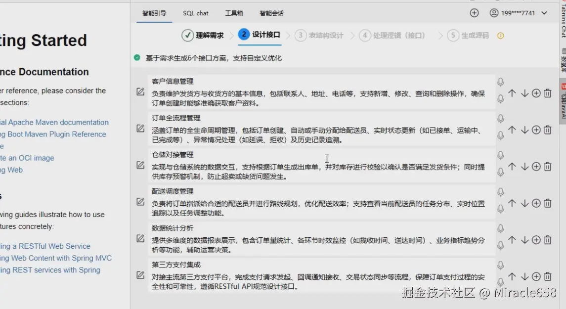 - 接口设计:生成带身份认证的标准化接口,比如创建订单的