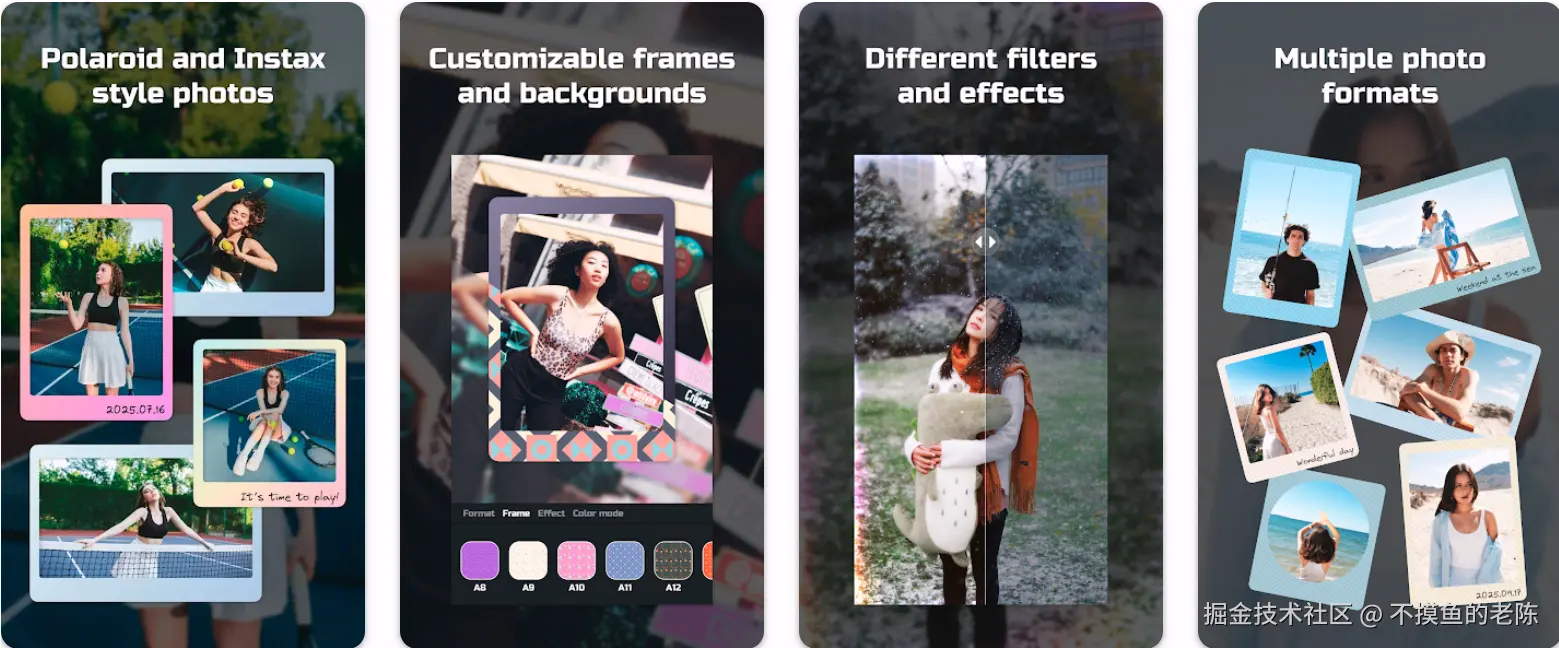 Polarshot是一款安卓相机应用,将照片转换成宝丽来风格的即时胶卷效果,用户可以拍摄新照片或导入现有照片并进行编辑。