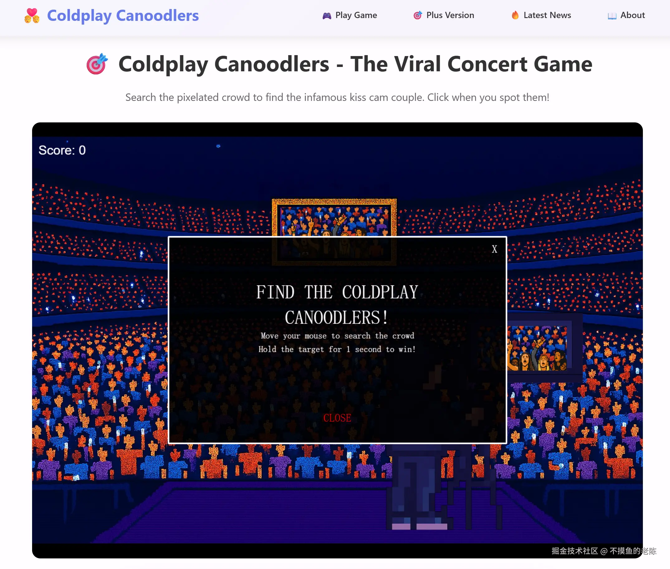 Coldplay Canoodlers是一款像素风游戏,玩家需要在人群中找出“尴尬情侣”。