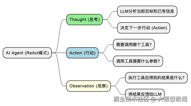 Agent的核心循环(ReAct模式:Reason + Act)如下: