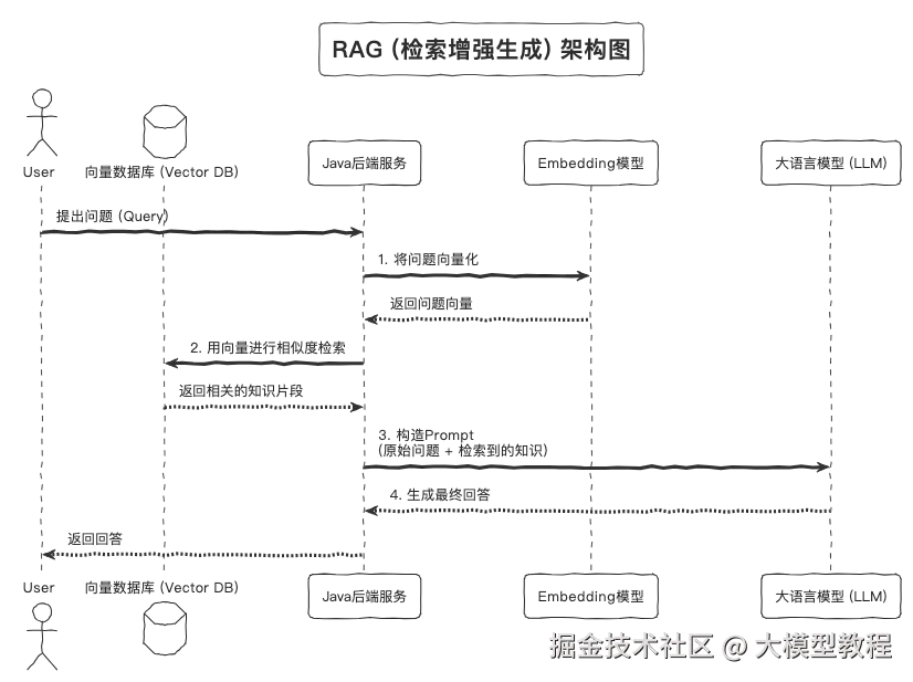 - Function Calling / Tool Calling: 这是让大模型能够与外部世界交互的“桥梁”。你可以定义一系列Java方法(工具),大模型在需要时会生成一个调用指令,你的Java代码负责执行并返回结果。