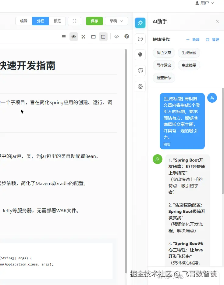 今天,我们就接着“写作助手”系列继续开发,为“成章”加上最重要的 AI 能力,避免上述各种折腾。