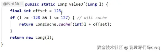 这是缓存模式的实现方式,在valueof为-128——127的时候之间的long对象,在这个范围内会重用对象,大于这个范围才会重新创建long对象。