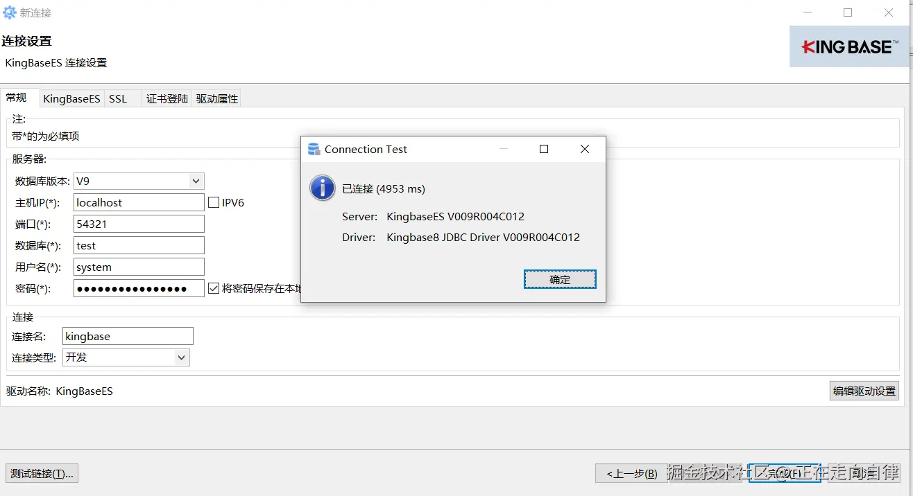 点击测试连接,提示连接成功,如下图: