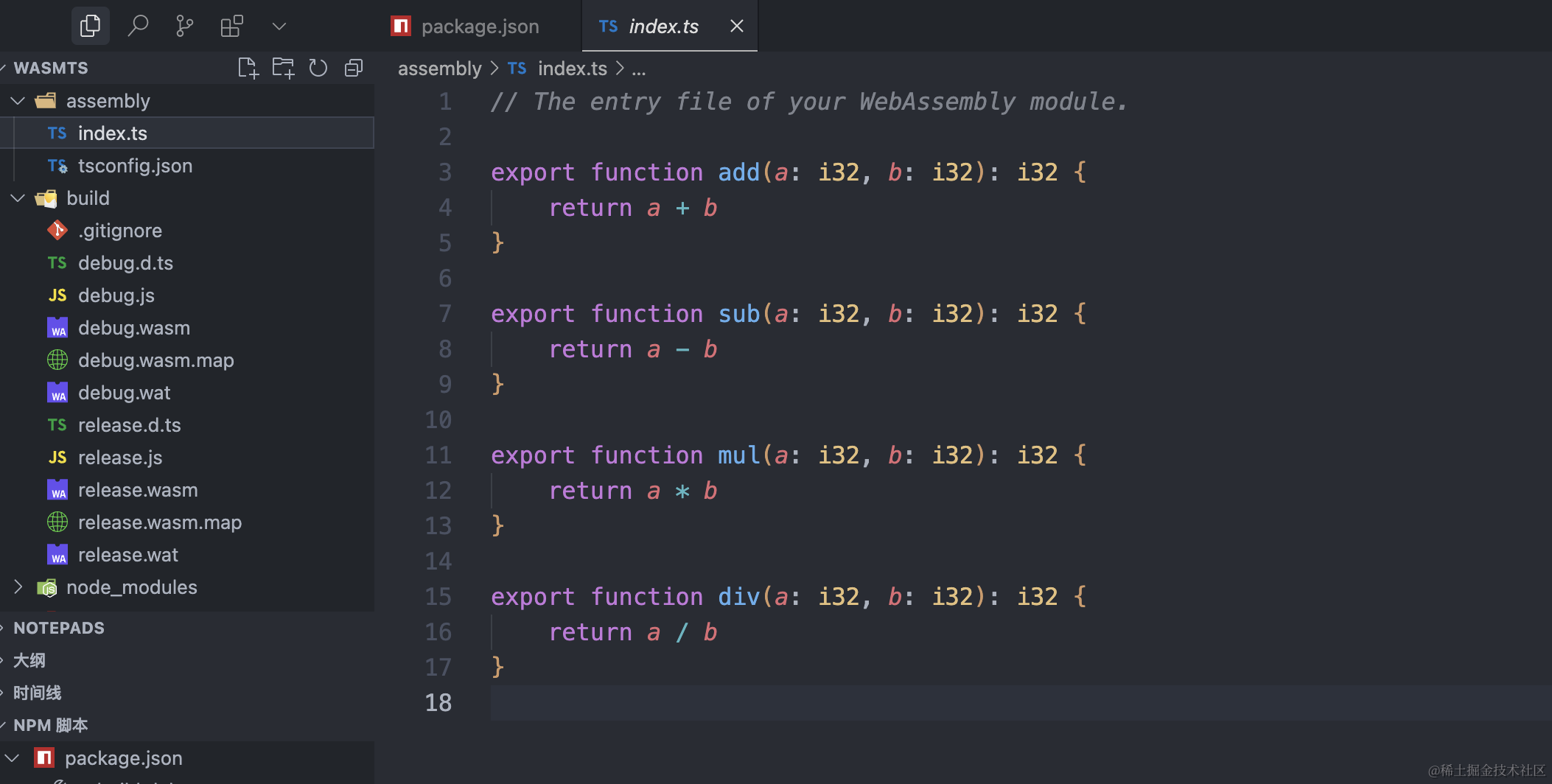 assemblyscript是一个开源项目,使用ts的方式编写wasm项目并生成wasm文件,官网文档地址:Getting started | The AssemblyScript Book