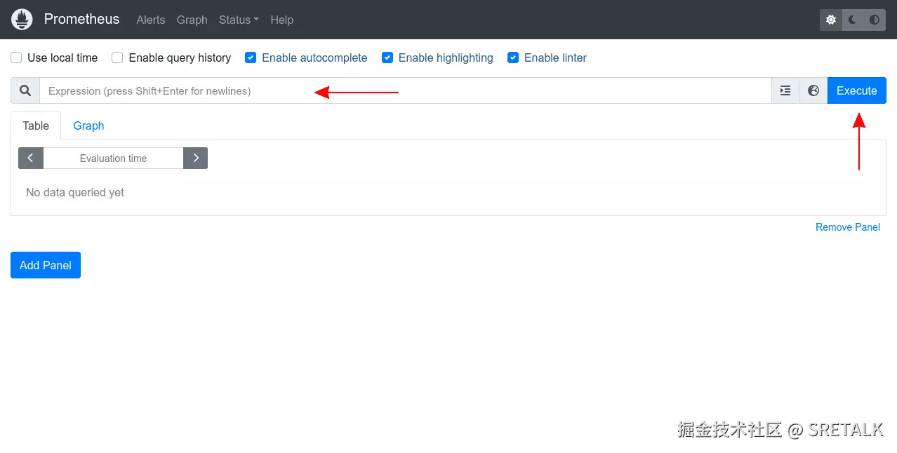 Prometheus 包含一个 Web UI,您可以使用它来查询数据。这不会自动公开。您可以使用 Kubectl 端口转发将本地流量重定向到集群中的服务来访问它: