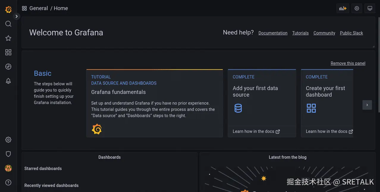 登录后,您将首先进入 Grafana 欢迎屏幕: