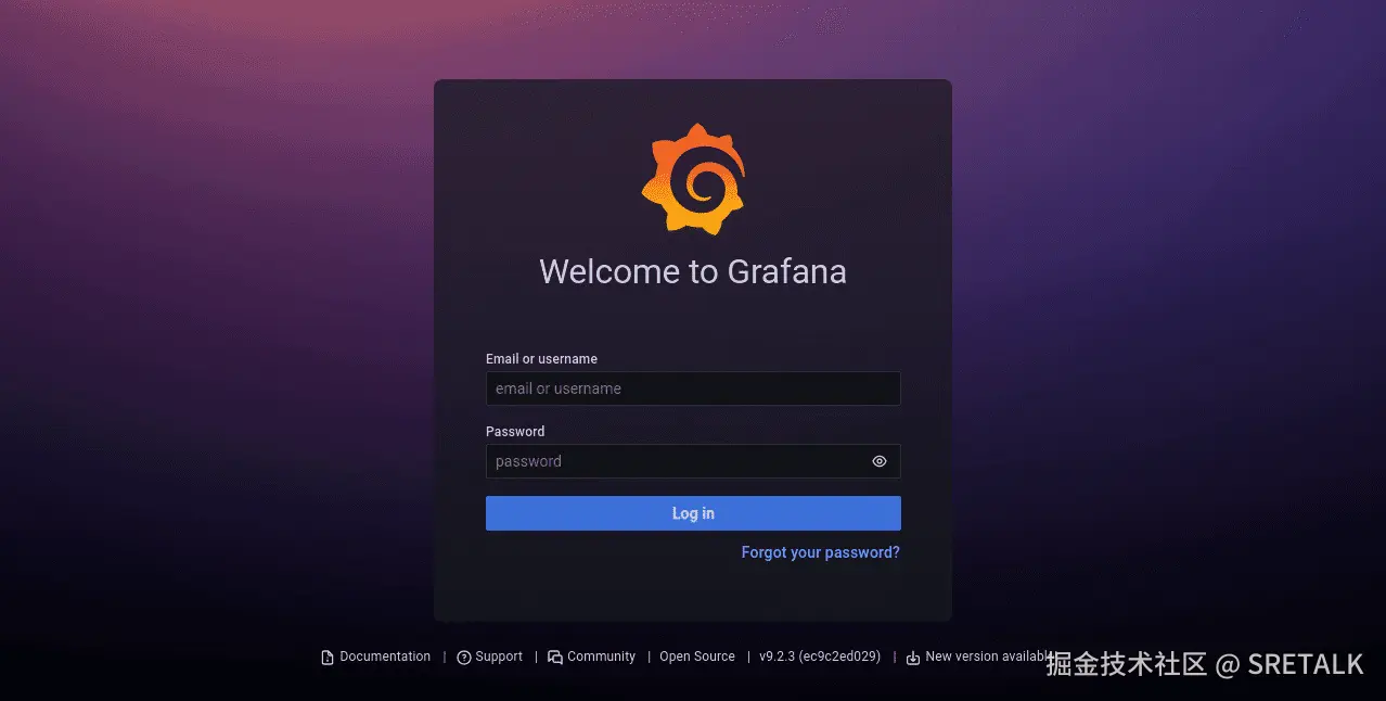 接下来,在浏览器中访问 http://localhost:8080。您将看到 Grafana 登录页面。默认用户帐户是 admin, 密码为 prom-operator。