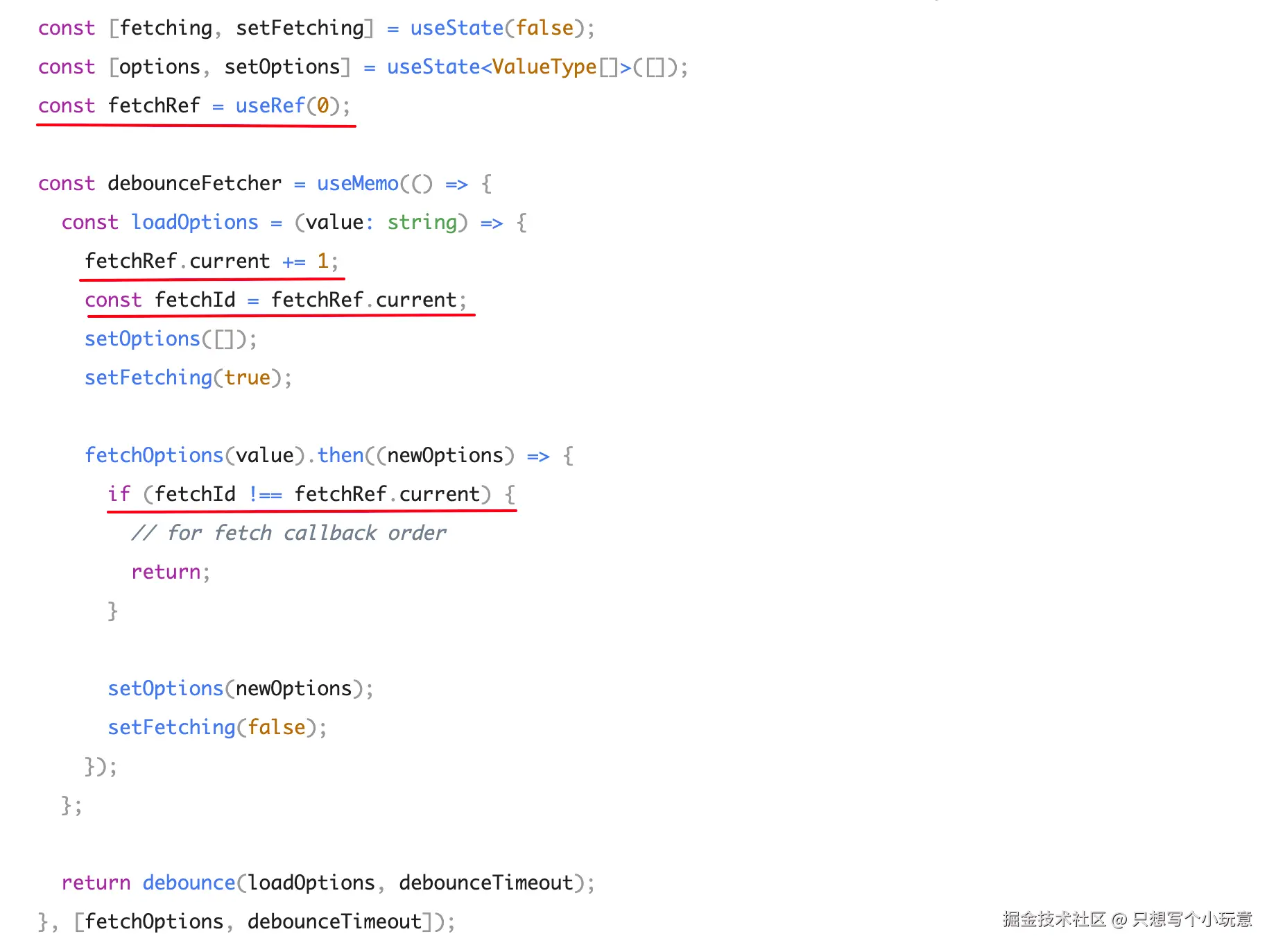 其实在 ant design 组件库文档中,就有介绍到处理竞态问题的 demo ,采用的也是类似的思路: ant.design/components/…